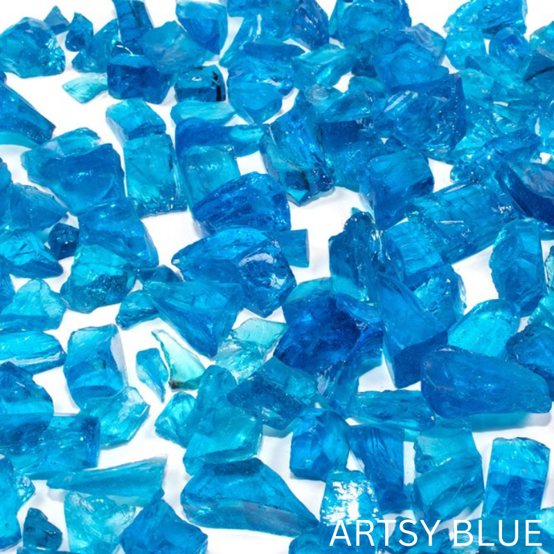 Is the most popular type of fire glass, featuring jagged, gem-like pieces that scatter light beautifully. Ideal for both indoor fireplaces and outdoor fire pits and fire tables. Availible in multiple sizes and colors